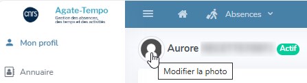 Vous avez la possibilité de changer la photo de votre compte peu importe le profil que vous avez sur Agate-Tempo.